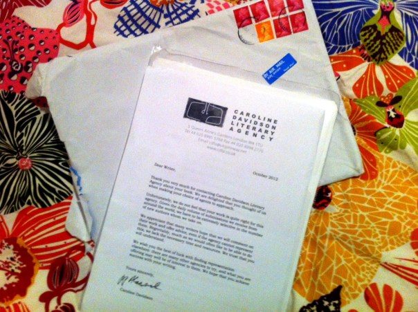 Look long, look hard people: this is what rejection looks like. £6.87 in pre-paid postage, and they photocopy the same letter so cheaply even the signature is smudged. To top it off, I’m reduced to the generic Writer. Dear Writer , but last time I checked (now), Unpublished Novel #1 was very much attached to a name…